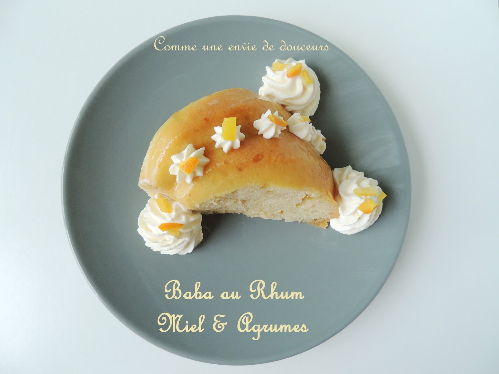For that recipe I took inspiration in a recipe of “Le Journal du Pâtissier”, I have to look to tell you which number, to quote my source… I’ve already try the combination of rum with orange in a previous recipe and I really liked it. Here the honey give a touch of sweetness that is really interesting and the savarin dough is really soft and easy to soak at heart.