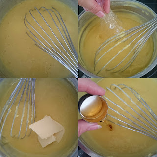 °Add the drained gelatine. Then the rum and the butter. Once the mixture smooths keep it lukewarm.