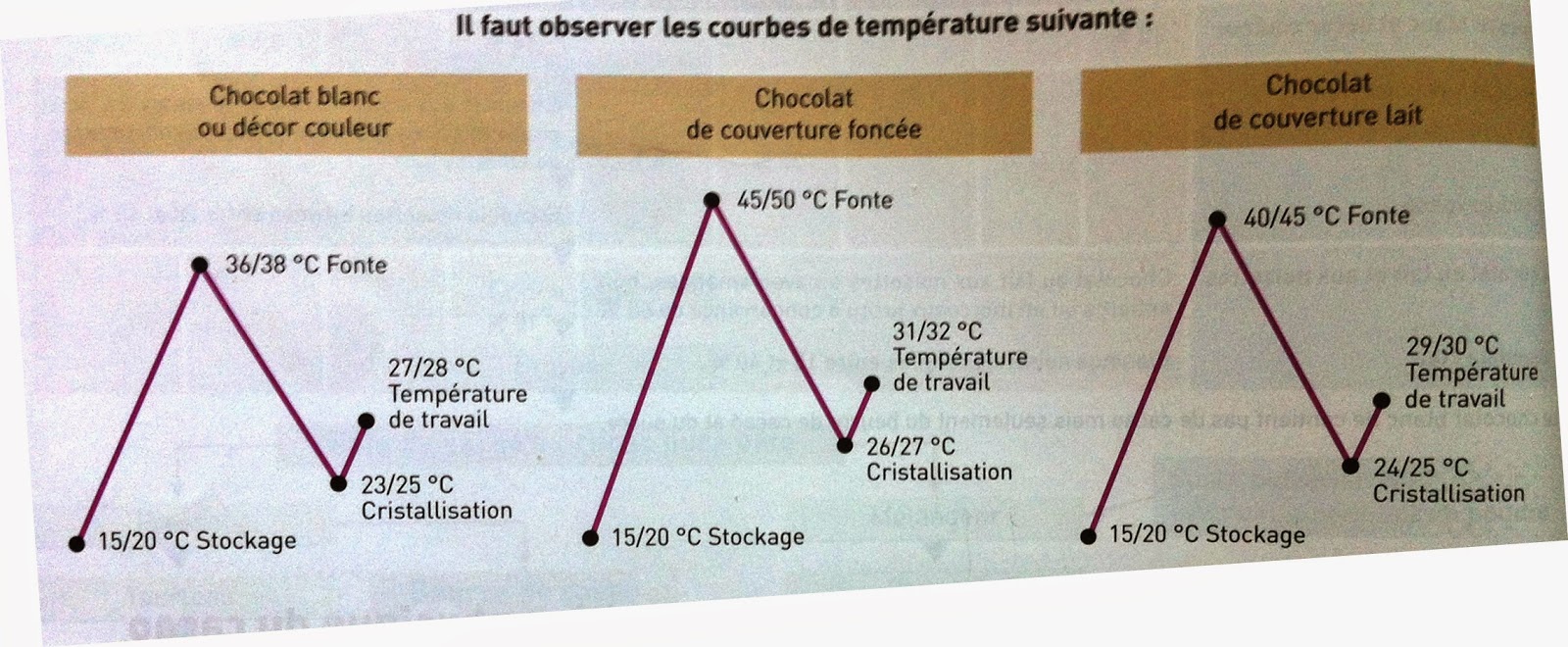 Il y a plusieurs méthodes pour tempérer votre chocolat mais il faut toujours respecter les courbes de température (ci dessous)