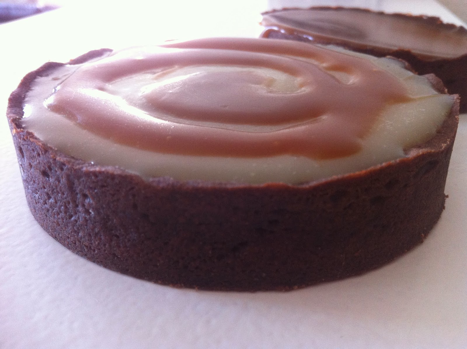 I have combined a cocoa sweet dough with a creamy chocolate and a salted butter caramel icing. This gives a melting tart, creamy and light astonishment.