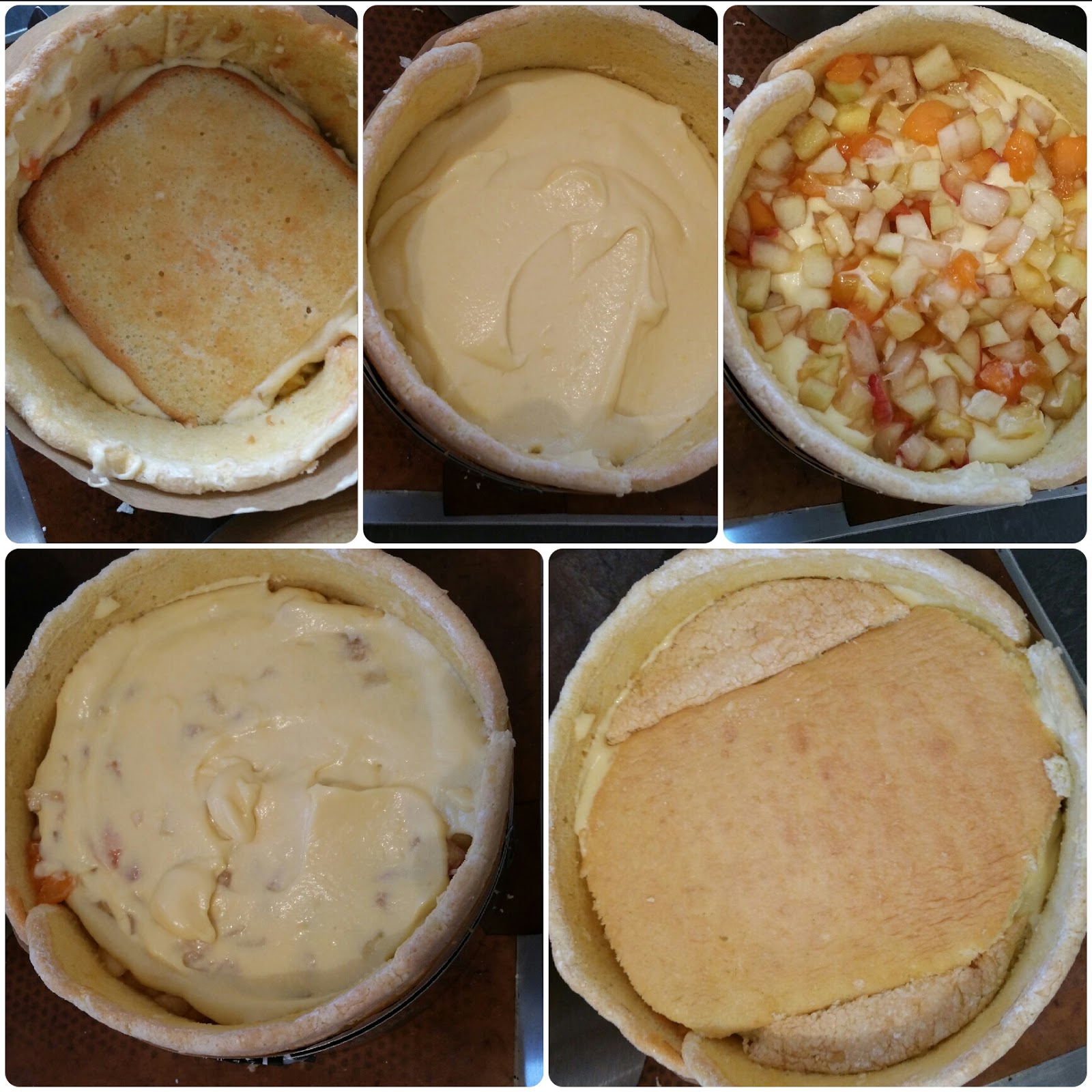 J’ai opté pour un biscuit cuiller, que l’on retrouve dans les charlottes, un mélange de fruits frais et des saveurs rafraichissantes d’agrumes avec une petite touche de grand Marnier. Ma belle mère ne consommant pas d’alcool j’ai dû faire cette étape en deux fois et remplacer le Grand
